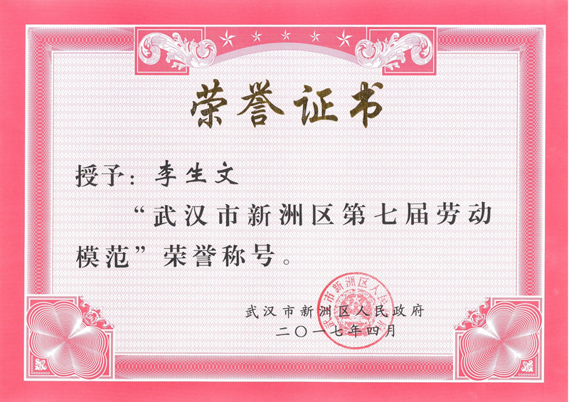 天馬項(xiàng)目經(jīng)理李生文榮獲“武漢市新洲區(qū)第七屆勞動(dòng)模范”榮譽(yù)稱號(hào)